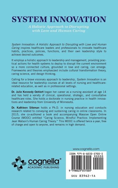 System Innovation: A Holistic Approach to Disrupting with Love and Human Caring inspires healthcare leaders and professionals to innovate healthcare habits, practices, policies, functions, and their own leadership style to achieve desired outcomes. It employs a holistic approach to leadership and management, providing practical actions for health systems to deploy to disrupt the current environment so a more connected culture, grounded in love and caring, can emerge. Frameworks and theories emphasized include cultural transformation theory, caring science, and design thinking. Calling for a brave visionary approach to leadership, System Innovation is an ideal resource for leadership courses at all levels of nursing and healthcare-related education, as well as in professional settings.