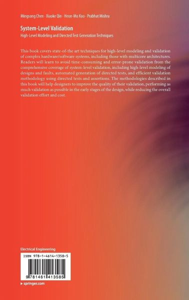 This book covers state-of-the art techniques for high-level modeling and validation of complex hardware/software systems, including those with multicore architectures. Readers will learn to avoid time-consuming and error-prone validation from the comprehensive coverage of system-level validation, including high-level modeling of designs and faults, automated generation of directed tests, and efficient validation methodology using directed tests and assertions. The methodologies described in this book will help designers to improve the quality of their validation, performing as much validation as possible in the early stages of the design, while reducing the overall validation effort and cost.