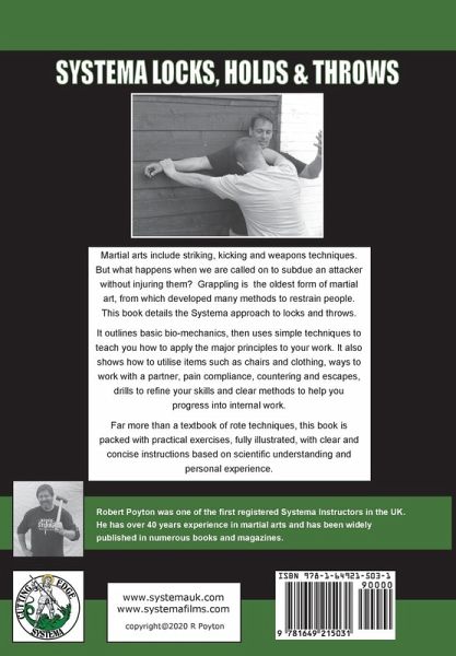 Martial arts include striking, kicking and weapons techniques. But what happens when we are called on to subdue an attacker without injuring them? Grappling is probably the oldest form of martial art, from which developed many methods to restrain people. This book details the Systema approach to locks, holds and throws. It outlines basic bio-mechanics, shows the relevance of the Four Pillars, then uses simple techniques to teach you how to apply the major principles to your work. It also shows how to utilise items such as chairs and clothing, ways to work with a partner, pain compliance, countering and escapes, drills to refine your skills and clear methods to help you progress into internal work. Far more than a textbook of rote techniques, this book is packed with practical exercises, fully illustrated, with clear and concise instructions based on scientific understanding and personal experience. "Rob Poyton has been training and teaching Systema since 2000. He is a dedicated and talented instructor, knowledgeable on all of the key components of Systema. Rob presents his teaching in a clear and structured manner through his classes and reading materials." - Vladimir Vasiliev, October 2019