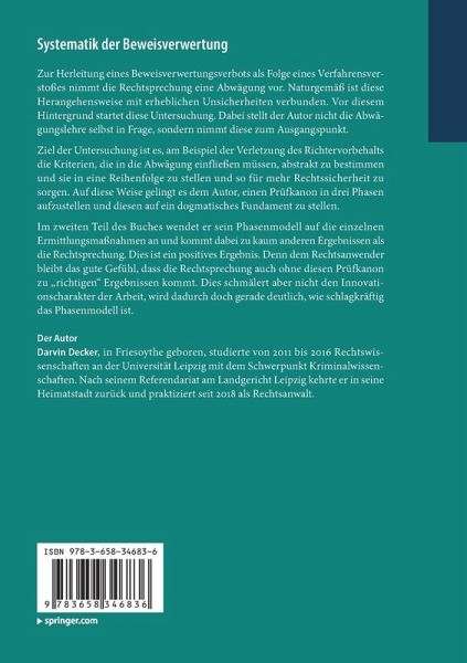 Ziel der Untersuchung ist es, am Beispiel der Verletzung des Richtervorbehalts die Kriterien, die in die Abwägung einfließen müssen, abstrakt zu bestimmen und sie in eine Reihenfolge zu stellen und so für mehr Rechtssicherheit zu sorgen. Auf diese Weise gelingt es dem Autor, einen Prüfkanon in drei Phasen aufzustellen und diesen auf ein dogmatisches Fundament zu stellen.
