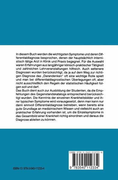 Allgemeine Symptome.- Fieber.- Allgemeine Schwäche.- Blut.- Vermehrung und Verminderung der weißen Blutzellen.- Vergrößerung der Lymphknoten (Lymphome).- Lokalisation und Diagnose der Lymphknotenerkrankungen.- Vergrößerung der Milz (Splenomegalie).- Anämie.- Vermehrung der Erythrozyten.- Hämorrhagische Diathese (Blutungsübel).- Serumeiweß.- Thorax, Atmungsorgane.- Thoraxschmerzen.- Husten.- Auswurf.- Hämoptyse.- Pleuraerguß.- Störungen der Atmung, Dyspnoe.- Zyanose.- Herz-Kreislauf.- Herzrhythmusstörungen.- Hypertonie.- Hypotonie.- Halsvenenstauung.- Arterielle Durchblutungsstörungen.- Störungen der venösen Durchblutung und des Lymphabflusses.- Verdauungsorgane, Abdominalorgane.- Anorexie, Appetitlosigkeit und Gewichtsverlust.- Schluckstörungen und Dysphagie.- Erbrechen.- Magen- und Darmblutung (Hämatemesis und Meläna).- Schmerzen im Abdominalbereich.- Diarrhö.- Obstipation.- Aszites.- Ikterus.- Nieren und ableitende Harnwege.- Proteinurie.- Leukozyturie.- Erythrozyturie.- Änderungen in der Urinmenge.- Oligurie und Anurie.- Wasser-Elektrolyt-Haushalt.- Störungen des Wasserhaushalts.- Störungen des Säure-Basen-Haushalts.- Hyperkaliämie und Hypokaliämie.- Kalzium, alkalische Phosphatase, Magnesium.- Kalzium.- Alkalische Phosphatase.- Hyper- und Hypomagnesämie.- Knochen, Gelenke, Muskulatur.- Erkrankungen der Knochen.- Gelenkschmerzen.- Rückenschmerzen.- Schmerzen in den Extremitäten.- Trommelschlegelfinger.- Muskelerkrankungen.- Nervensystem.- Kopfschmerzen.- Polyneuropathie.- Akute Störungen des Bewußtseins.- Koma.- SynkopaleAnfälle, Schwindel.- Schock.- Endokrine Krankheiten.- Struma und Erkrankungen der Schilddrüse.- Exophthalmus.- Magersucht, Untergewicht.- Fettsucht, Adipositas.- Gynäkomastie.- Haut und innere Krankheiten.-Abnorme Pigmentierung.- Hautsymptome bei inneren Krankheiten (außer Pigmentanomalien).- Pruritus.- Störungen des Haarwachstums.