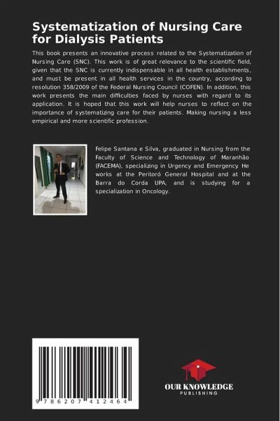 This book presents an innovative process related to the Systematization of Nursing Care (SNC). This work is of great relevance to the scientific field, given that the SNC is currently indispensable in all health establishments, and must be present in all health services in the country, according to resolution 358/2009 of the Federal Nursing Council (COFEN). In addition, this work presents the main difficulties faced by nurses with regard to its application. It is hoped that this work will help nurses to reflect on the importance of systematizing care for their patients. Making nursing a less empirical and more scientific profession.