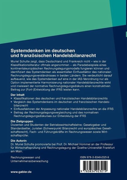 Muriel Schulte zeigt, dass Deutschland und Frankreich nicht - wie in der Klassifikationsliteratur oftmals angenommen - als Paradebeispiele eines kontinentaleuropäischen Rechnungslegungsmodells fungieren können und identifiziert das Systemdenken als essentiellen Einflussfaktor des nationalen Rechnungslegungsverständnisses in beiden Ländern. Sie verdeutlicht darauf aufbauend, wie das Systemdenken auf eine in der IAS-Verordnung nur als Option implementierte Harmonisierung nationaler Handelsbilanzrechte wirkt und inwieweit der normative Rechnungslegungsdiskurs einen konstruktiven Beitrag zur (Fort-)Entwicklung der IFRS leisten kann.
