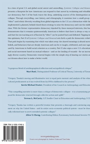 "Gregory Tanaka's moving and illuminative text is equal parts memoir and analysis of the ethnocultural predicament as it has evolved from his 1950s childhood to the present. It covers a wide range of experiences and tropes, yet all of them significantly American-business competition, baseball, public education, participatory democracy, the immigrant experience, and so on. In its most concerning moments, the book is, as Tanaka would say, 'an anthropology of collapse.' But then again, as it moves forward, it is also 'an anthropology of renewal.' I read in it promise. I read in it disappointment. I read in it possibility. This book feels like America. And I loved it." Kevin Michael Foster, President of the Council on Anthropology and Education, Founder of «Blackademics Television» on PBS TV, and Associate Professor, The University of Texas at Austin