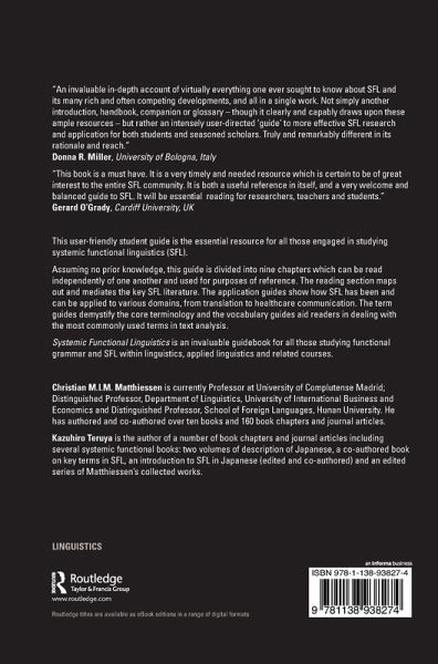Systemic Functional Linguistics is an invaluable guidebook for all those studying functional grammar and SFL within linguistics, applied linguistics and related courses.