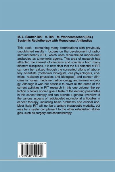 Almost a century ago Paul Ehrlich introduced the "magic bullet" concept of targeting therapeutic agents to specific tissues in order to reduce systemic toxicity. Due to the advances in hybridoma technology in the 1980s, monoclonal antibodies (MAbs) with their exquisite affinity to tumor antigens have become powerful tools in the treatment of cancer, especially when linked to therapeutic agents such as radionuclides, drugs, toxins, or enzymes. It can now be expected that such agents will lead to new cancer treatments with high therapeutic success rates. However, there are major problems in developing this therapeutic concept to a routine treatment modality. This is partly due to factors such as heterogenous distribution of tumor antigens, insufficient blood supply of tumors, high interstitial pressure, and the large interstitial space that antibodies have to traverse. This book is focused on the development in radio immunotherapy (RIT) using radio labeled monoclonal antibodies as tumoritoxic agents. This area of research has attracted the interest of clinicians and scientists from many different disciplines. It is now clear that the full potential of RIT can only be realized through the concerted efforts of laboratory scientists (molecular biologists, cell physiologists, chemists, radiation physicists, and biologists) and cancer clinicians in nuclear medicine, radiooncology, and internal oncology.