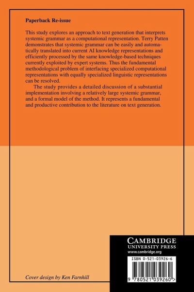This study explores a new approach to text generation that interprets systemic grammar as a computational representation. Terry Patten demonstrates that systemic grammar can be easily and automatically translated into current AI knowledge representations and efficiently processed by the same knowledge-based techniques currently exploited by expert systems. Thus the fundamental methodological problem of interfacing specialized computational respresentations with equally specialized linguistic representations can be resolved. The study provides a detailed discussion of a substantial implementation involving a relatively large systemic grammar, and a formal model of the method. It represents a fundamental and productive contribution to the literature on text generation.