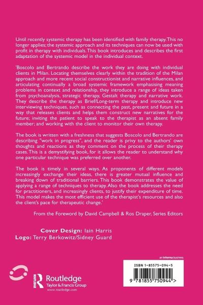 The authors describe the work they are doing with individual clients in Milan. Locating themselves clearly within the tradition of the Milan approach and more recent social constructionist and narrative influences, and articulating continually a broad systemic framework emphasizing meaning problems in context and relationship.