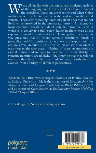 We are all familiar with the popular and academic analyses of the ongoing and future ascent of China. Two of the associated questions are whether and when China might succeed the United States as the lead state in the world system. These are interesting questions, albeit ones that are not likely to be answered in the immediate future. An alternative focus examines instead periods of systemic transition - eras in which it is conceivable that a new leader might emerge at the expense of an older system leader. Framing the question this way presumes that a) future systemic transitions remain a possibility and b) transitions do not occur abruptly but may require several decades to set up structural situations in which a transition might take place. Neither of these assumptions are carved in stone and are open to question. It may be that future systemic transitions are unlikely. Or, it may be that they will not occur as they have in the past. All of these possibilities are assessed from a variety of different perspectives.