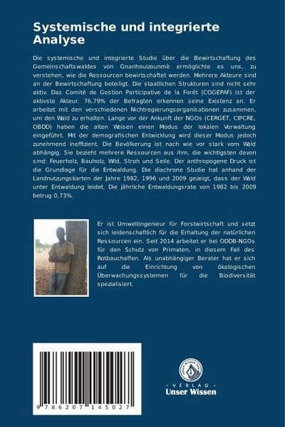 Die systemische und integrierte Studie über die Bewirtschaftung des Gemeinschaftswaldes von Gnanhouizounmè ermöglichte es uns, zu verstehen, wie die Ressourcen bewirtschaftet werden. Mehrere Akteure sind an der Bewirtschaftung beteiligt. Die staatlichen Strukturen sind nicht sehr aktiv. Das Comité de Gestion Participative de la Forêt (COGEPAF) ist der aktivste Akteur. 76,79% der Befragten erkennen seine Existenz an. Er arbeitet mit den verschiedenen Nichtregierungsorganisationen zusammen, um den Wald zu erhalten. Lange vor der Ankunft der NGOs (CERGET, CIPCRE, OBDD) haben die alten Weisen einen Modus der lokalen Verwaltung eingeführt. Mit der demografischen Entwicklung wird dieser Modus jedoch zunehmend ineffizient. Die Bevölkerung ist nach wie vor stark vom Wald abhängig. Sie bezieht mehrere Ressourcen aus ihm, die wichtigsten davon sind: Feuerholz, Bauholz, Wild, Stroh und Seile. Der anthropogene Druck ist die Grundlage für die Entwaldung. Die diachrone Studie hat anhand der Landnutzungskarten der Jahre 1982, 1996 und 2009 gezeigt, dass der Wald unter Entwaldung leidet. Die jährliche Entwaldungsrate von 1982 bis 2009 betrug 0,73%.