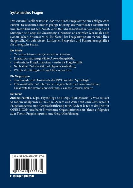 Grundpositionen des systemischen Ansatzes.- Fragearten und ausgewählte Anwendungsfelder.- Systemische Fragekompetenz - mehr als Fragetechnik.- Neutralität, Zirkularität und Hypothesenbildung.- Wie Sie die häufigsten Fragefehler vermeiden.