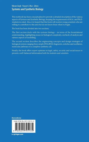 This textbook has been conceptualized to provide a detailed description of the various aspects of Systems and Synthetic Biology, keeping the requirements of M.Sc. and Ph.D. students in mind. Also, it is hoped that this book will mentor young scientists who are willing to contribute to this area but do not know from where to begin.The book has been divided into two sections.The first section will deal with systems biology - in terms of the foundational understanding, highlighting issues in biological complexity, methods of analysis and various aspects of modelling.The second section deals with the engineering concepts, design strategies of the biological systems ranging from simple DNA/RNA fragments, switches and oscillators, molecular pathways to a complete synthetic cell will be described.Finally, the book will offer expert opinions in legal, safety, security and social issues to present a well-balanced information both for students and scientists.