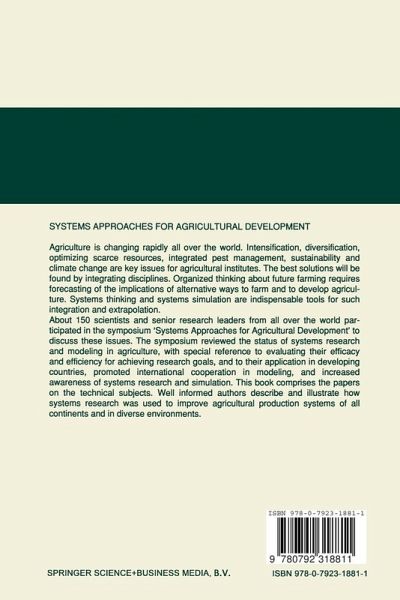 The symposium In the next decades, agriculture will have to cope with an ever-increasing demand for food and raw basic materials on the one hand, and with the necessity to use resources without further degrading or exhausting the environment on the other hand, and all this within a dynamic framework of social and economic conditions. Intensification, sustainability, optimizing scarce resources, and climate change are among the key issues. Organized thinking about future farming requires forecasting of consequences of alternative ways to farm and to develop agriculture. The complexity of the problems calls for a systematic approach in which many disciplines are integrated. Systems thinking and systems simulation are therefore indispensable tools for such endeavours. About 150 scientists and senior research leaders participated in the symposium 'Systems Approaches for Agricultural Development' (SAAD) at the Asian Institute of Technology (AIT), Bangkok, Thailand, in December 1991. The symposium had the following objectives: - to review the status of systems research and modeling in agriculture, with special reference to evaluating their efficacy and efficiency in achieving research goals, and to their application in developing countries; - to promote international cooperation in modeling, and increase awareness of systems research and simulation. The symposium consisted of plenary sessions with reviews of major areas in systems approaches in agriculture, plus presentations in two concurrent sessions on technical topics of systems research. Subjects of studies were from tropical and temperate countries.