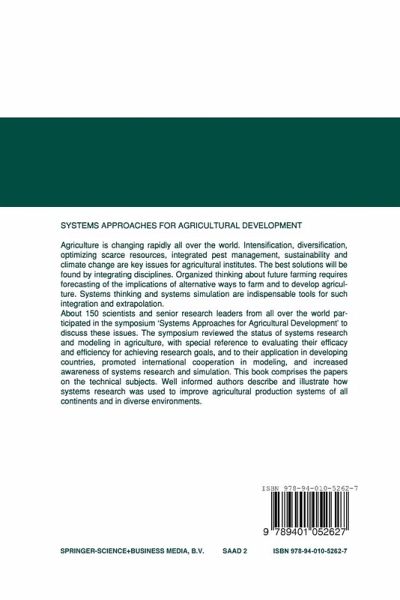 Agriculture is changing rapidly all over the world. Intensification, diversification, optimizing scarce resources, integrated pest management, sustainability and climate change are key issues for agricultural institutes. The best solutions will be found by integrating disciplines. Organized thinking about future farming requires forecasting of the implications of alternative ways to farm and to develop agriculture. Systems thinking and systems simulation are indispensable tools for such integration and extrapolation. About 150 scientists and senior research leaders from all over the world participated in the symposium `Systems Approaches for Agricultural Development' to discuss these issues. The symposium reviewed the status of systems research and modeling in agriculture, with special reference to evaluating their efficacy and efficiency for achieving research goals, and to their application in developing countries, promoted international cooperation in modeling, and increased awareness of systems research and simulation. This book comprises the papers on the technical subjects. Well informed authors describe and illustrate how systems research was used to improve agricultural production systems of all continents and in diverse environments.