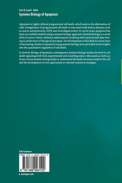 Systems Biology of Apoptosis summarizes all current achievements in this emerging field. Apoptosis is a process common to all multicellular organisms. Apoptosis leads to the elimination of cells via a complex but highly defined cellular programme. Defects in the regulation of apoptosis result in serious diseases such as cancer, autoimmunity, AIDS and neurodegeneration. Recently, a substantial step forward in understanding the complex apoptotic pathways has been made by utilising systems biology approaches. Systems biology combines rigorous mathematical modelling with experimental approaches in a closed loop cycle for advancing our knowledge about complex biological processes. In this book, the editor describes the contemporary systems biology studies devoted to apoptotic signaling and focuses on the question how systems biology helps to understand life/death decisions made in the cell and to develop new approaches to rational treatment strategies.