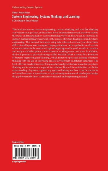 This book focuses on systems engineering, systems thinking, and how that thinking can be learned in practice. It describes a novel analytical framework based on activity theory for understanding how systems thinking evolves and how it can be improved to support multidisciplinary teamwork in the context of system development and systems engineering. This method, developed using data collected over four years from three different small space systems engineering organizations, can be applied in a wide variety of work activities in the context of engineering design and beyond in order to monitor and analyze multidisciplinary interactions in working teams over time. In addition, the book presents a practical strategy called WAVES (Work Activity for a Evolution of Systems engineering and thinking), which fosters the practical learning of systems thinking with the aim of improving process development in different industries. The book offers an excellent resource for researchers and practitioners interested in systems thinking and in solutions to support its evolution. Beyond its contribution to a better understanding of systems engineering, systems thinking and how it can be learned in real-world contexts, it also introduce a suitable analysis framework that helps to bridge the gap between the latest social science research and engineering research.