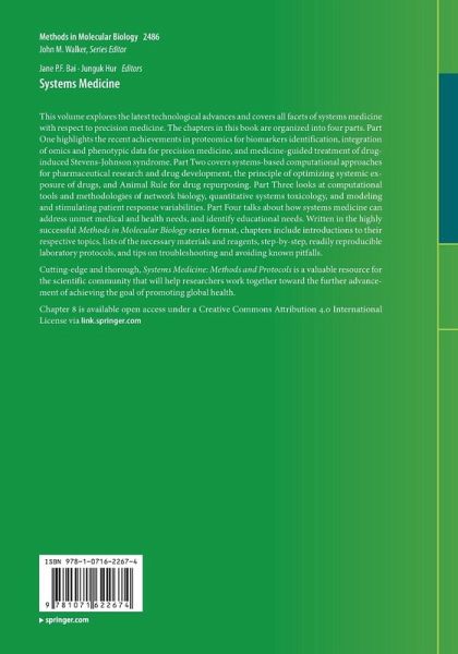 Cutting-edge and thorough, Systems Medicine: Methods and Protocols is a valuable resource for the scientific community that will help researchers work together toward the further advancement of achieving the goal of promoting global health.