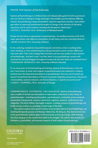 Comprehensive, systematic, and balanced, Systems of Psychotherapy uses a wealth of clinical cases to help readers understand a wide variety of psychotherapies - including psychodynamic, existential, experiential, interpersonal, exposure, behavioral, cognitive, third wave, systemic, multicultural, and integrative. The ninth edition of this landmark text thoroughly analyzes 15 leading systems of psychotherapy and briefly surveys another 32, providing students and practitioners with a broad overview of the discipline. The book explores each system's theory of personality, theory of psychopathology, and resulting therapeutic process and therapy relationship. Through these explorations the authors clearly demonstrate how psychotherapy systems agree on the processes producing change while diverging on the elements in need of change. Additionally, the authors present cogent criticisms of each approach from cognitive-behavioral, psychoanalytic, humanistic, cultural, and integrative perspectives. This ninth edition features updated meta-analytic reviews of the effectiveness of each system, new sections on Lacanian analysis, mentalization therapy, and psychotherapy with gender nonconforming people, as well as new sections and updates throughout the text.