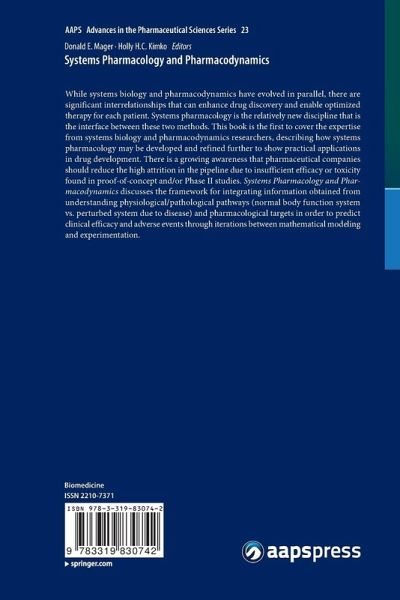 While systems biology and pharmacodynamics have evolved in parallel, there are significant interrelationships that can enhance drug discovery and enable optimized therapy for each patient. Systems pharmacology is the relatively new discipline that is the interface between these two methods. This book is the first to cover the expertise from systems biology and pharmacodynamics researchers, describing how systems pharmacology may be developed and refined further to show practical applications in drug development. There is a growing awareness that pharmaceutical companies should reduce the high attrition in the pipeline due to insufficient efficacy or toxicity found in proof-of-concept and/or Phase II studies. Systems Pharmacology and Pharmacodynamics discusses the framework for integrating information obtained from understanding physiological/pathological pathways (normal body function system vs. perturbed system due to disease) and pharmacological targets in order to predict clinical efficacy and adverse events through iterations between mathematical modeling and experimentation.