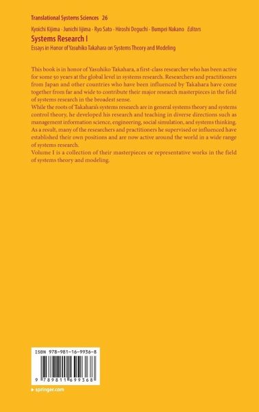 This book is in honor of Yasuhiko Takahara, a first-class researcher who has been active for some 50 years at the global level in systems research. Researchers and practitioners from Japan and other countries who have been influenced by Takahara have come together from far and wide to contribute their major research masterpieces in the field of systems research in the broadest sense. While the roots of Takahara's systems research are in general systems theory and systems control theory, he developed his research and teaching in diverse directions such as management information science, engineering, social simulation, and systems thinking. As a result, many of the researchers and practitioners he supervised or influenced have established their own positions and are now active around the world in a wide range of systems research. Volume I is a collection of their masterpieces or representative works in the field of systems theory andmodeling.