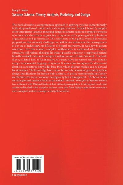 This book describes a comprehensive approach to applying systems science formally to the deep analysis of a wide variety of complex systems. Detailed 'how-to' examples of the three phases (analysis-modeling-design) of systems science are applied to systems of various types (machines, organic (e.g. ecosystem), and supra-organic (e.g. business organizations and government). The complexity of the global system has reached proportions that seriously challenge our abilities to understand the consequences of our use of technology, modification of natural ecosystems, or even how to govern ourselves. For this reason, complex mathematics is eschewed when simpler structures will suffice, allowing the widest possible audience to apply and benefit from the available tools and concepts of systems science in their own work. The book shows, in detail, how to functionally and structurally deconstruct complex systems using a fundamental language of systems. It shows how to capture the discovered details in a structured knowledge base from which abstract models can be derived for simulation. The knowledge base is also shown to be a basis for generating system design specifications for human-built artifacts, or policy recommendations/policy mechanisms for socio-economic-ecological systems management. The book builds on principles and methods found in the authors' textbook Principles of Systems Science (co-authored with Michael Kalton), but without prerequisites. It will appeal to a broad audience that deals with complex systems every day, from design engineers to economic and ecological systems managers and policymakers.