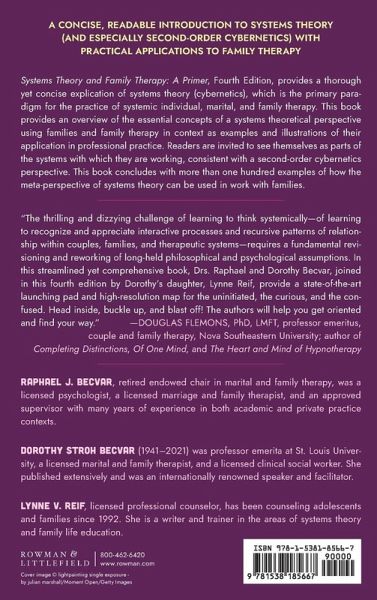 Acknowledgments Foreword-Sally St. George and Dan Wulff Preface-Raphael J. Becvar Introduction: How to Use This Book 1 About Theories 2 Systems Theory/Cybernetics: A Paradigm Shift Modernism Postmodernism Constructivism Social Constructionism First-Order and Second-Order Cybernetics 3 First-Order Cybernetics: Definitions of Concepts Boundaries Communication/Information Processing Context Entropy and Negative Entropy Equifinality Homeostasis, Morphostasis, and Morphogenesis Open and Closed Systems Positive and Negative Feedback Recursion Relationship Wholeness Summary and Conclusion 4 Second-Order Cybernetics: Definition of Concepts Autopoiesis Consensual Domains Epistemology of Participation Feedback Nonpurposeful Drift Openness and Closedness Reality as a Multiverse Structural Coupling Structural Determinism Wholeness and Self-Reference Summary and Conclusion 5 Family Interpretive Systems/Stories 6 Family Development Through the Life Cycle 7 The Family as System 8 A Critique and Defense of the Systems Perspective 9 Patterns to Ponder Double Messages Patterns and Paradoxes to Ponder 10 Implications for Family Therapy Stability and Change General Principles Engaging the Family, Assessment, and Therapeutic Goals Pragmatics Final Thoughts 11 In Conclusion References Index About the Authors