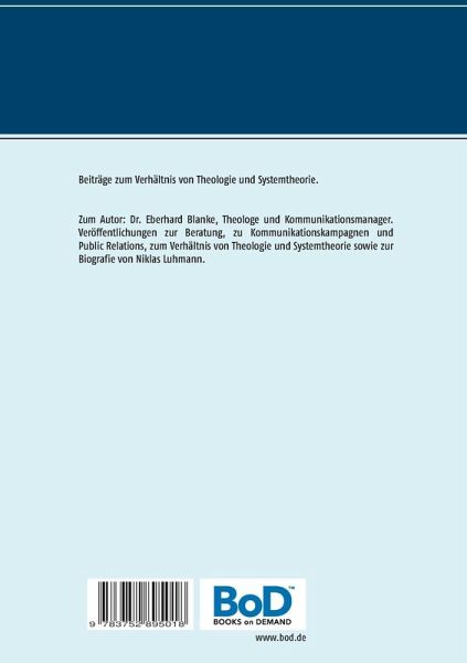Zum Autor: Dr. Eberhard Blanke, Theologe und Kommunikationsmanager. Veröffentlichungen zur Beratung, zu Kommunikationskampagnen und Public Relations, zum Verhältnis von Theologie und Systemtheorie sowie zur Biografie von Niklas Luhmann.