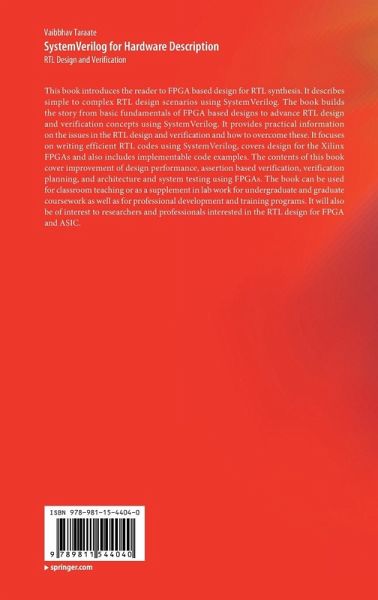This book introduces the reader to FPGA based design for RTL synthesis. It describes simple to complex RTL design scenarios using SystemVerilog. The book builds the story from basic fundamentals of FPGA based designs to advance RTL design and verification concepts using SystemVerilog. It provides practical information on the issues in the RTL design and verification and how to overcome these. It focuses on writing efficient RTL codes using SystemVerilog, covers design for the Xilinx FPGAs and also includes implementable code examples. The contents of this book cover improvement of design performance, assertion based verification, verification planning, and architecture and system testing using FPGAs. The book can be used for classroom teaching or as a supplement in lab work for undergraduate and graduate coursework as well as for professional development and training programs. It will also be of interest to researchers and professionals interested in the RTL design for FPGA and ASIC.