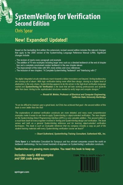 This second edition contains a new chapter that covers programs and interfaces as well as chapters with updated information on directed testbench and OOP, layered, and random testbench for an ATM switch. This edition also includes a new chapter that covers "Interfacing to C" and many new and improved examples and explanations.
