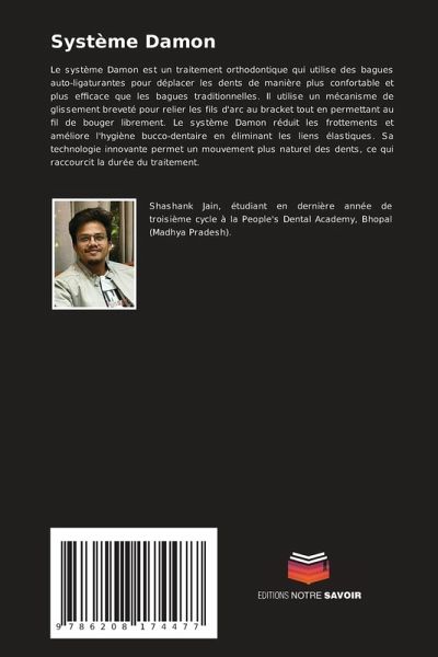 Le système Damon est un traitement orthodontique qui utilise des bagues auto-ligaturantes pour déplacer les dents de manière plus confortable et plus efficace que les bagues traditionnelles. Il utilise un mécanisme de glissement breveté pour relier les fils d'arc au bracket tout en permettant au fil de bouger librement. Le système Damon réduit les frottements et améliore l'hygiène bucco-dentaire en éliminant les liens élastiques. Sa technologie innovante permet un mouvement plus naturel des dents, ce qui raccourcit la durée du traitement.