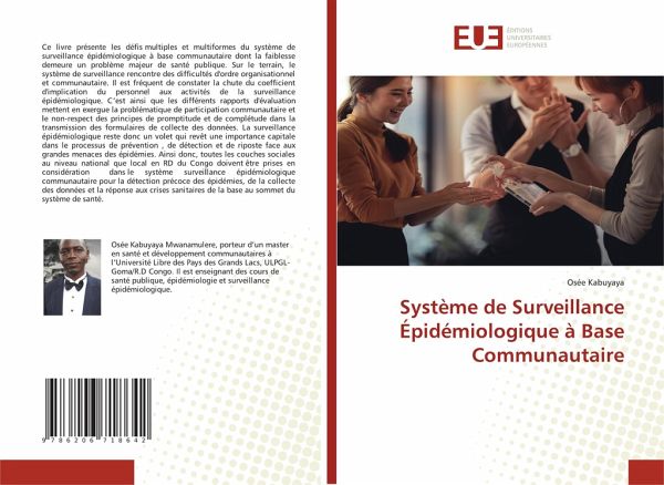 Ce livre présente les défis multiples et multiformes du système de surveillance épidémiologique à base communautaire dont la faiblesse demeure un problème majeur de santé publique. Sur le terrain, le système de surveillance rencontre des difficultés d'ordre organisationnel et communautaire. Il est fréquent de constater la chute du coefficient d'implication du personnel aux activités de la surveillance épidémiologique. C'est ainsi que les différents rapports d'évaluation mettent en exergue la problématique de participation communautaire et le non-respect des principes de promptitude et de complétude dans la transmission des formulaires de collecte des données. La surveillance épidémiologique reste donc un volet qui revêt une importance capitale dans le processus de prévention , de détection et de riposte face aux grandes menaces des épidémies. Ainsi donc, toutes les couches sociales au niveau national que local en RD du Congo doivent être prises en considération dans le système surveillance épidémiologique communautaire pour la détection précoce des épidémies, de la collecte des données et la réponse aux crises sanitaires de la base au sommet du système de santé.