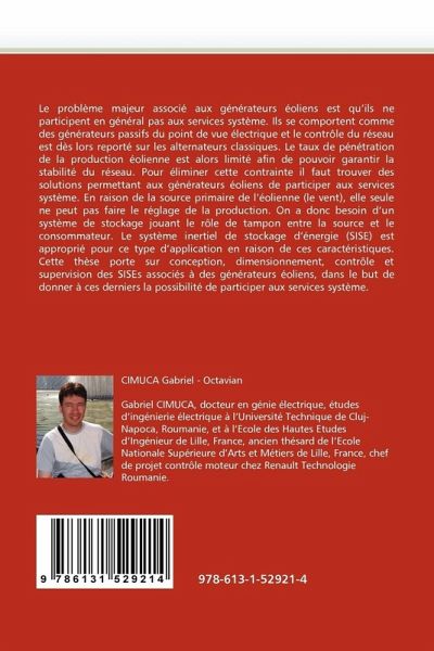 Le problème majeur associé aux générateurs éoliens est qu'ils ne participent en général pas aux services système. Ils se comportent comme des générateurs passifs du point de vue électrique et le contrôle du réseau est dès lors reporté sur les alternateurs classiques. Le taux de pénétration de la production éolienne est alors limité afin de pouvoir garantir la stabilité du réseau. Pour éliminer cette contrainte il faut trouver des solutions permettant aux générateurs éoliens de participer aux services système. En raison de la source primaire de l'éolienne (le vent), elle seule ne peut pas faire le réglage de la production. On a donc besoin d'un système de stockage jouant le rôle de tampon entre la source et le consommateur. Le système inertiel de stockage d'énergie (SISE) est approprié pour ce type d'application en raison de ces caractéristiques. Cette thèse porte sur conception, dimensionnement, contrôle et supervision des SISEs associés à des générateurs éoliens, dans le but de donner à ces derniers la possibilité de participer aux services système.