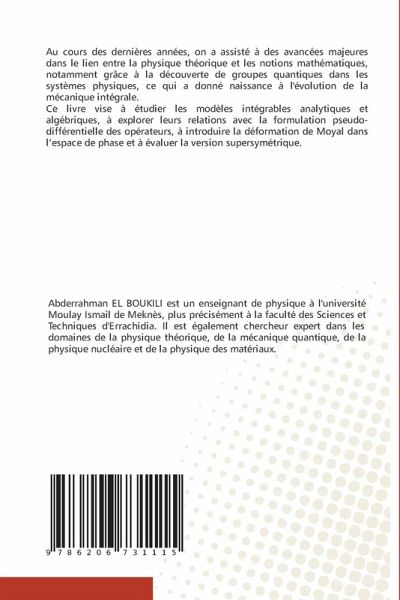 Au cours des dernières années, on a assisté à des avancées majeures dans le lien entre la physique théorique et les notions mathématiques, notamment grâce à la découverte de groupes quantiques dans les systèmes physiques, ce qui a donné naissance à l'évolution de la mécanique intégrale.Ce livre vise à étudier les modèles intégrables analytiques et algébriques, à explorer leurs relations avec la formulation pseudo-différentielle des opérateurs, à introduire la déformation de Moyal dans l'espace de phase et à évaluer la version supersymétrique.