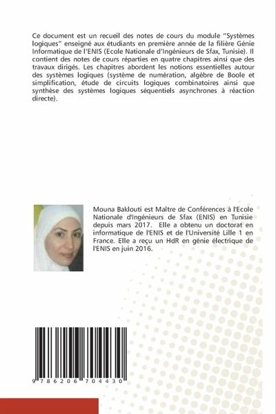 Ce document est un recueil des notes de cours du module "Systèmes logiques" enseigné aux étudiants en première année de la filière Génie Informatique de l'ENIS (Ecole Nationale d'Ingénieurs de Sfax, Tunisie). Il contient des notes de cours réparties en quatre chapitres ainsi que des travaux dirigés. Les chapitres abordent les notions essentielles autour des systèmes logiques (système de numération, algèbre de Boole et simplification, étude de circuits logiques combinatoires ainsi que synthèse des systèmes logiques séquentiels asynchrones à réaction directe).