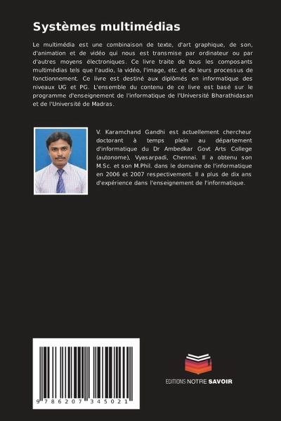 Le multimédia est une combinaison de texte, d'art graphique, de son, d'animation et de vidéo qui nous est transmise par ordinateur ou par d'autres moyens électroniques. Ce livre traite de tous les composants multimédias tels que l'audio, la vidéo, l'image, etc. et de leurs processus de fonctionnement. Ce livre est destiné aux diplômés en informatique des niveaux UG et PG. L'ensemble du contenu de ce livre est basé sur le programme d'enseignement de l'informatique de l'Université Bharathidasan et de l'Université de Madras.