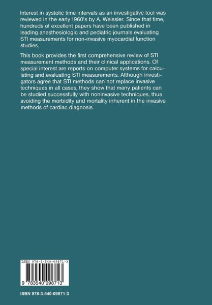 Systolic time intervals (STI), known for a long time, were revived in the early 1960s by Arnold Weissler. The first important papers came from him; they eval uated STI measurements in larger populations, established norms, and compared STI measurements with other invasive methods. Since then, several hundred ex cellent papers have appeared using and evaluating STI measurements for myo cardial function studies. These have appeared in prominent cardiologic journals throughout the world as well as in the anesthesiologic and pediatric medical literature. When consent of subjects to medical…mehr
