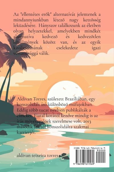 Az "ellentétes er¿k" alternatívát jelentenek a mindannyiunkban létez¿ nagy kett¿sség leküzdésére. Hányszor találkozunk az életben olyan helyzetekkel, amelyekben mindkét alternatíva kedvez¿ és kedvez¿tlen körülmények között van, és az egyik kiválasztásának cselekedete igazi vértanúsággá válik. Meg kell tanulnunk átgondolni és alaposan átgondolni, hogy melyik az igazi követend¿ út, és ennek a választásnak a következményei. Végül össze kell állítanunk életünk "ellentétes er¿it", és gyümölcsöt kell hoznunk. Így elérhetjük a nagyon kívánt boldogságot. Ami a könyv aspektusát illeti, azt mondhatjuk, hogy egy kiáltásból származik, amelyet a kétségbeesés barlangjában hallottam. Ez a kiáltás volt az oka a könyvben elmondott összes kalandnak.Teljesített küldetés; Remélem, elértem a célomat, hogy csak egy ember álmodjon. Ez az, amit most még jobban javaslok, mivel egy er¿szakkal, kegyetlenséggel és igazságtalansággal teli világban élünk. Az "ellentétes er¿k" soha többé nem lesznek ugyanazok a megjelenése után, és alig várom, hogy új kalandot kezdjek az olvasókkal, akik szintén ezt kívánják tenni.