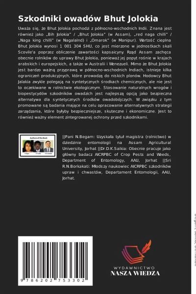 Uwäa si¿, ¿e Bhut Jolokia pochodzi z pó¿nocno-wschodnich Indii. Znana jest równie¿ jako "Bih Jolokia" / "Bhut Jolokia" (w Assam), "red naga chilli" / "Naga king chilli" (w Nagalalnd) i "Omarok" (w Manipur). Warto¿¿ cieplna Bhut Jolokia wynosi 1 001 304 SHU, co jest mierzone w jednostkach skali Scovile'a poprzez obliczenie zawarto¿ci kapsaicyny. Rz¿d Assam zach¿ca obecnie rolników do uprawy Bhut Jolokia, poniewä jej popyt ro¿nie w krajach arabskich i europejskich, a tak¿e w Australii i Wenezueli. Mimo ¿e Bhut Jolokia jest bardzo wän¿ przypraw¿ w pó¿nocno-wschodnich Indiach, istnieje kilka ogranicze¿ produkcyjnych, które prowadz¿ do niskich plonów. Hodowcy Bhut Jalakia zwykle polegaj¿ na syntetycznych ¿rodkach chemicznych, ale nie jest to oczekiwane w rolnictwie ekologicznym. Stosowanie naturalnych wrogów i biopestycydów szkodników owadzich jest najlepsz¿ opcj¿ jako bezpieczna alternatywa dla syntetycznych ¿rodków owadobójczych. W zwi¿zku z tym promowane s¿ badania maj¿ce na celu opracowanie alternatywnych strategii zarz¿dzania, które by¿yby bezpieczniejsze, skuteczne i ekonomiczne. Jest to równie¿ wäny element zintegrowanej ochrony przed szkodnikami.