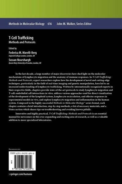 "This book, as the title describes, is primarily a collection of methods to investigate T-cell trafficking. ... this book details a comprehensive range of techniques for monitoring T-cell trafficking, along with the background behind the techniques, as well as their potential uses. This book would appeal to anyone interested in the field of T-cell trafficking and would be invaluable to PhD students and postdoctoral scientist setting up these techniques." (Judith Ramage, Immunology News, August, 2011)