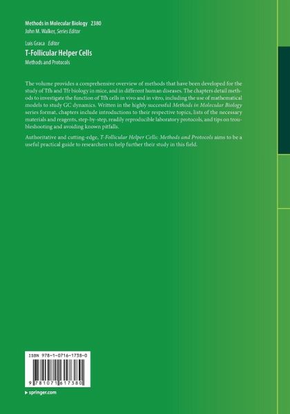 Complete Visualization of T Follicular Helper Cells in Germinal Centers.- In vivo imaging of Tfh cells.- Circulating T Follicular Helper Subsets in Human Blood.- Identification of Human Circulating and Tissue T Follicular Regulatory (Tfr) Cells by Flow Cytometry.- Assessment of circulating Tfh and Tfr by mass cytometry.- Identification of T peripheral helper (Tph) cells.- Identification of non-classical follicular T cells.- Identification of follicular T cells in the gut.- Intravital imaging of Tfh dynamics.- A method to analyze models of the dynamics of GCs.- Identification of Antigen Presenting Cell subsets supporting human Tfh differentiation Lamine Alaoui, Melanie Durand, and Elodie Segura.- The use of peptide-MHCII tetramers to identify antigen-specific T follicular helper and T follicular regulatory cells.- Assessment of the TCR repertoire of human circulating T follicular helper cells.- Assessing in vivo T cell-dependent antigen-specific antibody responses.- Tfh-mediated and Tfr-suppressed antigen driven IgG and IgE assays.- Assessment of the impact of cytokines on TFH, TREG, and TFR cell populations after influenza infection.- Evaluation of human circulating T follicular helper cells in influenza- and SARS-CoV-2-specific B cell immunity.- Detection of T follicular helper cells and T follicular regulatory cells in experimental Sjögren's syndrome.- Identification of Human T Follicular Cells in Ectopic Lymphoid Structures.- Understanding T Follicular helper cells in asthma through murine models of allergic airway disease.- Therapeutic modulation of T follicular helper cells by low-dose IL-2 treatment.- 3D tissue explant and single-cell culture systems for ex vivo drug testing on Tfh cells derived from human adenoid tonsils.