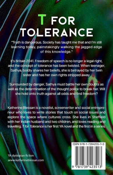 "Truth is dangerous. Society has taught me that and I'm still learning today, painstakingly walking the jagged edge of this knowledge." It's Britain 2041. Freedom of speech is no longer a legal right, and the concept of tolerance has been twisted. When teenager, Sathya, boldly shares her beliefs, she is betrayed by her twin sister and has her own rights stripped away. Surrounded by danger, Sathya must battle her own doubts as well as the determination of the thought police to break her. Will she hold onto truth against all odds and find freedom?