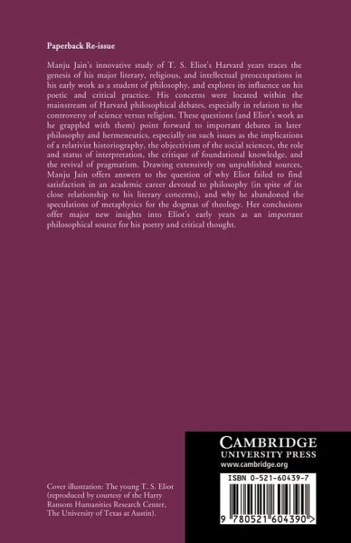 Manju Jain's innovative study of T. S. Eliot's Harvard years traces the genesis of his major literary, religious and intellectual preoccupations in his early work as a student of philosophy, and explores its influence on his poetic and critical practice. His concerns were located within the mainstream of Harvard philosophical debates, especially in relation to the controversy of science versus religion. These questions (and Eliot's work as he grappled with them) point forward to important debates in contemporary philosophy and hermeneutics. Drawing extensively on unpublished sources, Manju Jain offers answers to the questions of why Eliot failed to find satisfaction in an academic career devoted to philosophy, and why he abandoned the speculations of metaphysics for the dogmas of theology.
