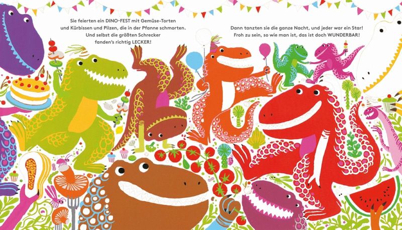 T-Rex Theobald kann rennen, grollen, brüllen - so laut wie seine Freunde. Nur beim Essen fällt er immer auf, denn während die anderen genüsslich ein Steak malmen, ist Theobald ganz scharf auf Bananen, Quark und Karotten-Torte, Broccoli und Blattspinat. Irgendwann hat er es satt, immer aufgezogen zu werden, und macht sich auf die Suche nach anderen pflanzenfressenden Sauriern. Diese nehmen vor lauter Angst vor dem wilden T-Rex Reißaus, doch zu Hause wird Theobald schon sehr vermisst. Und schließlich beweist er allen, dass er auch ohne Fleisch ein echt starker Dinosaurier ist.