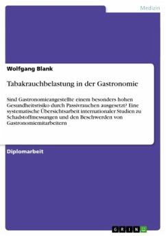 Diplomarbeit aus dem Jahr 2007 im Fachbereich Gesundheit - Sonstiges, Note: 1,7, Universität zu Köln, Sprache: Deutsch, Abstract: Spätestens seit Beginn der 1980er Jahre konnte wissenschaftlich nachgewiesen werden, dass ein direkter Zusammenhang zwischen Passivrauchen und den daraus folgenden gesundheitlichen Belastungen besteht. Zu den häufigste Folgeerkrankungen zählen Atemwegserkrankungen, Herz-Kreislauferkrankungensowie Lungenkrebs. Diese Gesundheitsbelastungen werden durch die mehr als 4.000 bekannten Chemikalien, aus denen sich der Tabakrauch zusammensetzt, begünstigt. Von diesen Schadstoffen sind 69 als Kanzerogene bekannt oder werdendies verdächtigt. Zahlreiche internationale Studien haben gezeigt, dass die höchstendurch Passivrauchen bedingten Schadstoffkonzentrationen, die sowohl in derInnenraumluft als auch im menschlichen Organismus gemessen wurden, bei Angestellten in Gastronomiebetrieben zu finden sind. Aufgrund der gravierenden gesundheitlichen Relevanz befasst sich die vorliegende Arbeit mit der zentralen Fragestellung, welche Auswirkungen die Einführung einer rauchfreien Gastronomie auf die durch Passivrauchen bedingten gesundheitlichen Belastungen der Gastronomiemitarbeiter hat. Diesbezüglich werden folgende Hypothesen aufgestellt:a. Die Einführung einer rauchfreien Gastronomie führt zu einer verbesserten Luftqualität und einer daraus folgenden verringerten Schadstoffbelastung in den Innenräumen von Gastronomiebetrieben.b. Rauchfreie Arbeitsplätze in der Gastronomie reduzieren die im Organismus der Gastronomieangestellten gemessenen giftigen und krebserregenden Schadstoffe.c. Gastronomieangestellte weisen an rauchfreien Arbeitsplätzen verbesserte Lungenfunktionen auf und haben weniger subjektive Beschwerden, wie respiratorische und sensorische Irritationen.d. Die Einführung einer rauchfreien Gastronomie führt zu einer verringerten durch Passivrauchen bedingten Wahrscheinlichkeit an Herz-Kreislauferkrankungen oder Lungenkrebs zu erkranken.Somit ist das Ziel dieser Arbeit die Identifizierung und Auswertung internationaler Studien zu der oben genannten Fragestellung und deren kritische Evaluierung hinsichtlich der Auswirkungen des Passivrauchens auf die Gesundheit von Gastronomiemitarbeitern.
