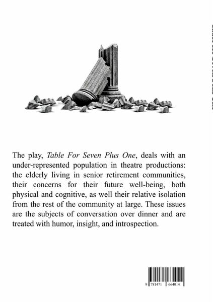 The play, Table For Seven Plus One, deals with an under-represented population in theatre productions: the elderly living in senior retirement communities, their concerns for their future well-being, both physical and cognitive, as well their relative isolation from the rest of the community at large. These issues are the subjects of conversation over dinner and are treated with humor, insight, and introspection.