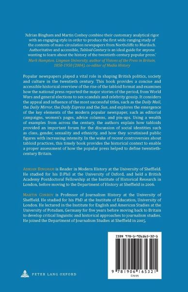 Popular newspapers played a vital role in shaping British politics, society and culture in the twentieth century. This book provides a concise and accessible historical overview of the rise of the tabloid format and examines how the national press reported the major stories of the period, from World Wars and general elections to sex scandals and celebrity gossip. It considers the appeal and influence of the most successful titles, such as the Daily Mail, the Daily Mirror, the Daily Express and the Sun, and explores the emergence of the key elements of the modern popular newspaper, such as editorial campaigns, women's pages, advice columns, and pin-ups. Using a wealth of examples from across the century, the authors explain how tabloids provided an important forum for the discussion of social identities such as class, gender, sexuality and ethnicity, and how they scrutinised public figures with increasing intensity. In the wake of recent controversies about tabloid practices, thistimely book provides the historical context to enable a proper assessment of how the popular press helped to define twentieth-century Britain.