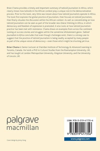 This book provides a timely and important summary of tabloid journalism in Africa, which clearly shows how tabloids in the African context play a unique role in the democratization process. Prior to this book, very little was known about how tabloid journalists operate in Africa. The book first explores the global practice of journalism and then focuses on tabloid journalism - finally situating the discussion within the African context. As well as concentrating on how tabloid journalism can be seen as part of the broader neo-liberal thinking in Africa, in which democracy and freedom of expression is promoted, it also looks at how tabloid journalism practice has been met with resistance from the alliance of forces. Chama draws on examples from across the continent looking at success stories and struggles within the sometime infotainment genre. Tabloid Journalism in Africa concludes that even though challenges exist, there is a strong case to suggest that the practice of tabloid journalism is being readily accepted by many people as part of the unique voices of democracy - even those which might be shocking yet true.