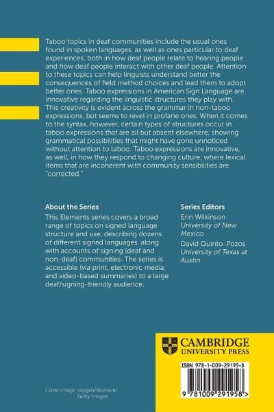 Taboo topics in deaf communities include those found in spoken languages, as well as ones particular to deaf experiences, both in how deaf people relate to hearing people and how deaf people interact with other deaf people. These topics can help linguists understand better the consequences of field method choices and lead them to adopt better ones.