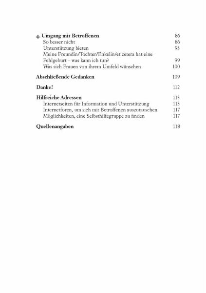 Viele Frauen, die Fehlgeburten erleiden, schweigen und fühlen sich in ihrer Situation allein, denn es ist ein gesellschaftliches Tabuthema, über den Verlust des ungeborenen Kindes zu sprechen. Dabei bleibt oft auch die professionelle, sensible medizinische Betreuung auf der Strecke und die Verarbeitung wird erschwert. Was erleben Frauen bei einer Fehlgeburt? Kennen sie ihre Rechte und Möglichkeiten? Was hilft ihnen, die Situation zu verarbeiten? Die Autorin hat mehr als 400 Frauen befragt und ihre Antworten in dieses Buch einbezogen. Dieser Ratgeber bietet fachliche Informationen rund um das Thema Fehlgeburt und soll Frauen Wissen an die Hand geben, um den Verlust bestmöglich zu verarbeiten. Aber auch Angehörigen, Freunden und medizinischem Personal kann dieses Buch helfen, sensibel mit dem Thema umzugehen.