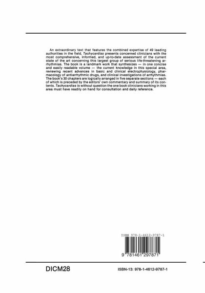 I. Basic Mechanisms and Classification: Editorial Comment.- 1. Mechanisms of Tachycardia.- 2. Ventricular Fibrillation.- 3. Cardiac Automaticity in Normal and Some Abnormal Conditions.- 4. Effects of Autonomic Tone on Tachycardias.- 5. Historical Background and Evolution of Established and Obsolete Terms Used to Characterize Tachycardia.- II. Supraventricular Tachycardias: Editorial Comment.- 6. Electrophysiology, Mechanisms, Diagnosis, and Treatment of Paroxysmal Recurrent Atrioventricular Nodal Reentrant Tachycardia.- 7. Tachycardias in which the Reentry Circuit Includes Atrioventricular Bypass Tracts.- 8. Supraventricular Ectopic Tachycardias due to Mechanisms Other than Reentry.- 9. Role of Electrophysiologic Studies in the Diagnosis of Paroxysmal Supraventricular Tachycardias.- 10. Tachycardia-Bradycardia Syndrome.- 11. Observations on the Mechanism of Atrial Flutter.- 12. Atrial Fibrillation.- 13. Ventricular Response in Atrial Fibrillation: Effects of AV Nodal Refractory Periods, Atrioventricular Block, and Preexcitation Syndromes.- III. Ventricular Tachycardias: Editorial Comment.- 14. Ventricular Tachycardia in Man: Mechanisms.- 15. Torsades de Pointes.- 16.Electrophysiologic Testing in Ventricular Tachycardia: Diagnosis and Methodology.- IV. Underlying Conditions: Editorial Comment.- 17. Tachycardias in Children.- 18. Ventricular Tachyarrhythmias in the Various Stages of Ischemic Heart Disease.- 19. Arrhythmia in Cardiomyopathy.- 20. Arrhythmias Associated with Mitral Valve Prolapse.- 21. Digitalis-Induced Tachycardias.- 22. Tachycardia Related to Electrolyte Imbalance.- V. Approaches to Therapy: Editorial Comment.- 23. Digitalis and Beta-adrenergic Blocking Drugs for the Treatment of Tachycardias.- 24. Role of Slow Channel Blocking Drugs in the Treatment of Tachycardias.- 25. Drugs Acting on the Fast Inward Sodium Current in the Management of Tachycardias.- 26. Amiodarone.- 27. Bretylium Tosylate in the Treatment of Tachycardias.- 28. Role of Pacing in the Treatment of Tachycardias.- 29. Role of Surgery in the Treatment of Tachycardias.- 30. Role of Electrophysiologic Studies in the Treatment of Tachycardias.- References.